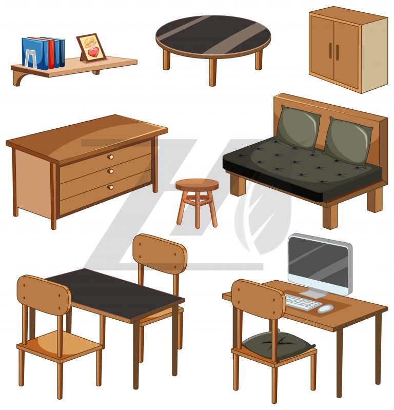 وکتور میز چوبی، وکتور مجموعه مبلمان ، وکتور مجموعه مبلمان اتاق نشیمن پس زمینه جدا