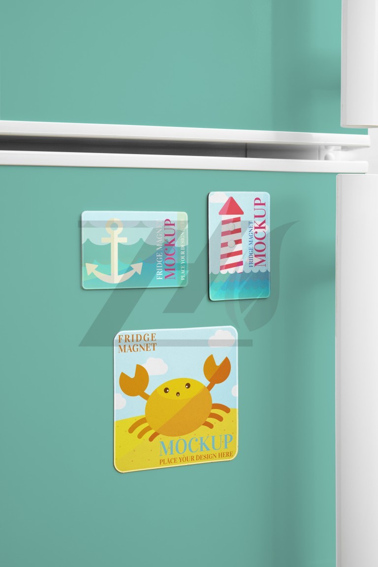 موکاپ مگنت، موکاپ لیبل مگنت دار، موکاپ مگنت روی در یخچال، فایل لایه باز موکاپ لیبل مگنت در یخچال