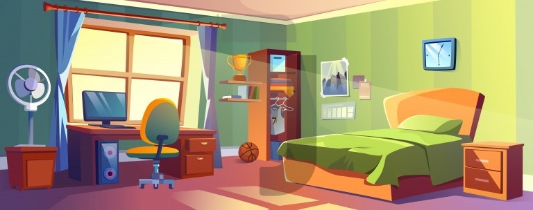 وکتور فضای داخلی اتاق خواب به سبک کارتونی، وکتور فضای داخلی اتاق خواب، وکتور اتاق خواب به سبک کارتونی، وکتور اتاق خواب، وکتور تختخواب، وکتور میز