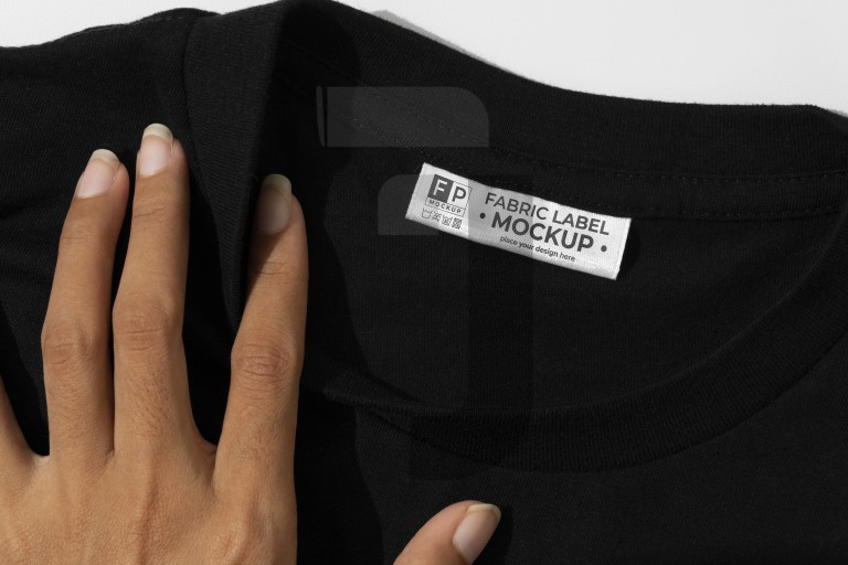 موکاپ تگ و اتیکت پشت یقه، موکاپ تگ پشت یقه، موکاپ اتیکت پشت یقه، موکاپ تگ و اتیکت پشت یقه تیشرت تاشده