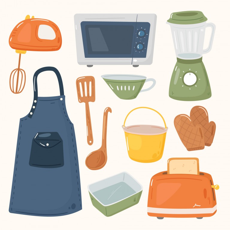 وکتور وسایل آشپزخانه کشیده شده به صورت کارتونی