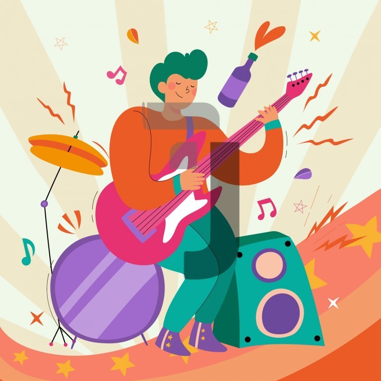 وکتور کاراکتر کارتونی در حال نواختن گیتار، وکتور شخصیت کارتونی در حال نواختن گیتار، وکتور کاراکتر پسرجوان در حال نواختن گیتار، وکتور کاراکتر پسر جوان در حال گیتار زدن، وکتور کاراکتر پسر جوان در حال نواختن گیتار در کنسرت، وکتور کاراکتر کارتونی پسر جوان در حال نواختن گیتار