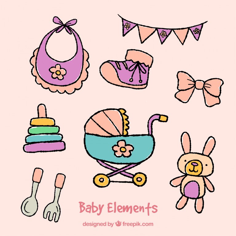 وکتور کارتونی وسایل بچه ، وکتور خرس، وکتور کالسکه، وکتور قاشق چنگال، وکتور پیشبند، وکتور کفش، وکتور پاپیون، وکتور خرگوش کارتونی