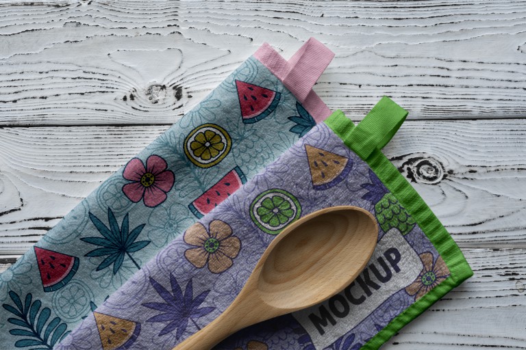 فایل لایه باز موکاپ حوله آشپزخانه طرح دار