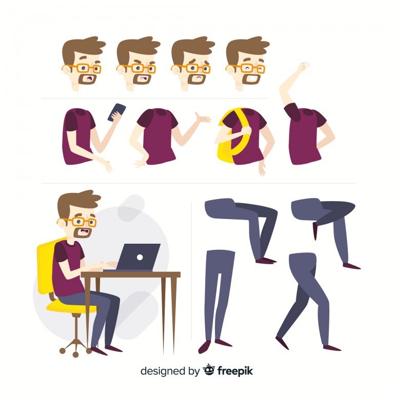 وکتور کاراکتر مرد کارتونی در حالت های مختلف بدنی ، وکتور کاراکتر مرد کارتونی در حالت های مختلف، وکتور مرد در حالت های مختلف بدنی، کاراکتر انیمیشن، کارراکتر متحرک، کاراکتر پس دانشجو، وکتور کاراکتر مرد نشسته در حال کار، وکتور کاراکتر ،