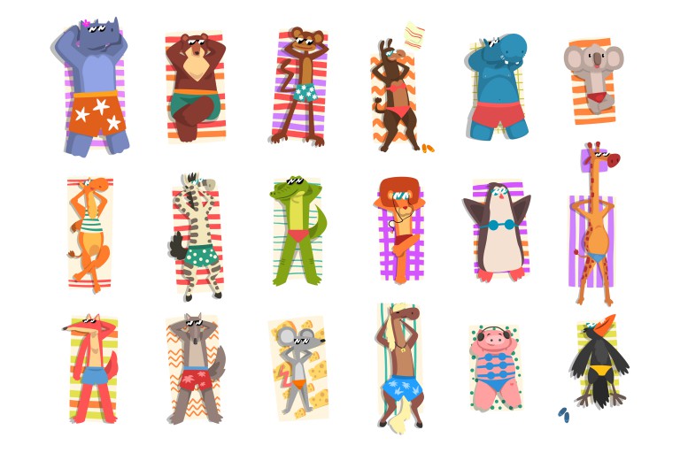 وکتور تصویر حیوانات مختلف در حال آفتاب گرفتن