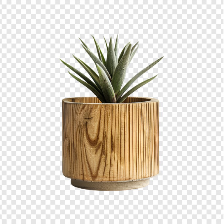 فایل لایه باز گلدان با بدنه چوبی با گیاه آپارتمانی