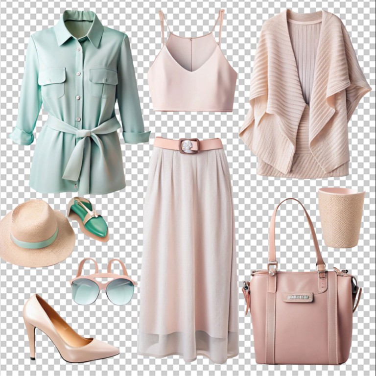 فایل لایه باز ست لباس زنانه رنگ صورتی، فایل لایه باز کیف صورتی، فایل لایه باز کلاه، فایل لایه باز کفش صورتی، فایل لایه باز دامن صورتی، فایل لایه باز ست کیف و کفش صورتی