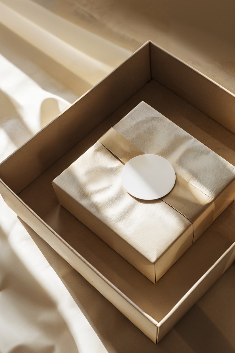 فایل لایه باز موکاپ طرح جعبه هدیه با برچسب