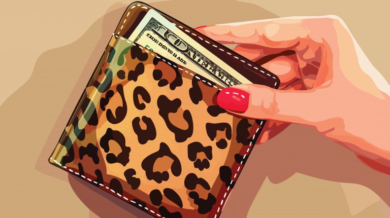 وکتور کیف پول پلنگی، وکتور کیف پول پلنگی به همراه پول ،وکتور کیف پول پلنگی به همراه دست ،وکتور کیف پول در دست زن،وکتور کیف پول با پول در دستان زن با لاک های قرمزوکتور کیف پول پلنگی