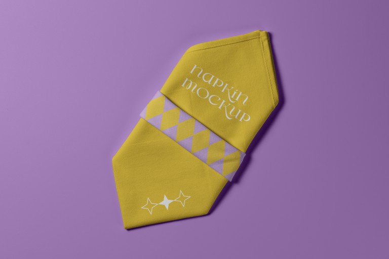 فایل لایه باز موکاپ دستمال سفره با پس زمینه بنفش
