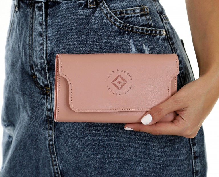 موکاپ کیف، موکاپ کیف پولی، موکاپ کیف پولی صورتی ، موکاپ کیف، موکاپ کیف در دست ، موکاپ لیبل کیف ، موکاپ کیف ، فایل لایه باز موکاپ کیف پولی